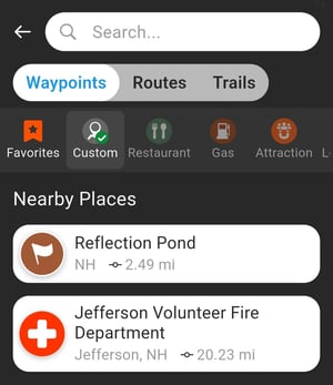 From here, you can filter by Custom and see all of your custom waypoints listed.