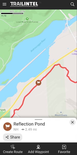 Create Route - One way to find a destination to navigate to while on the trails (rather than searching or browsing POI categories), or a way to plan a route for later