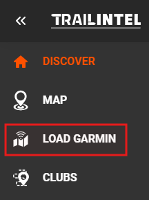 From the side menu, click "Load Garmin". Then click "Connect Device" on the next page.