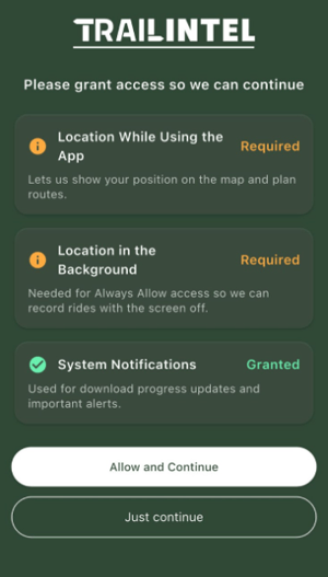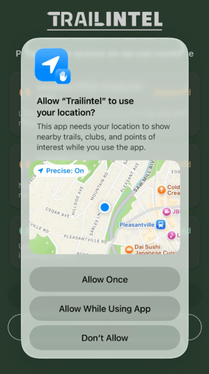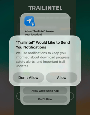When setting up the TrailIntel app for the first time, it will run through some permission requests to optimize your experience and ensure functionality.