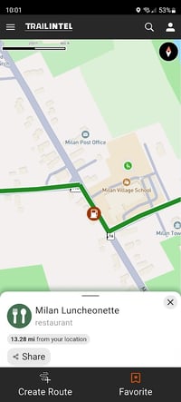 When you open the TrailIntel app and browse the map, you will see points of interest displayed on the map as icons. You can click any icon to see the details on the point, share it, save it as a favorite, or use it as the starting or ending point of a new route.